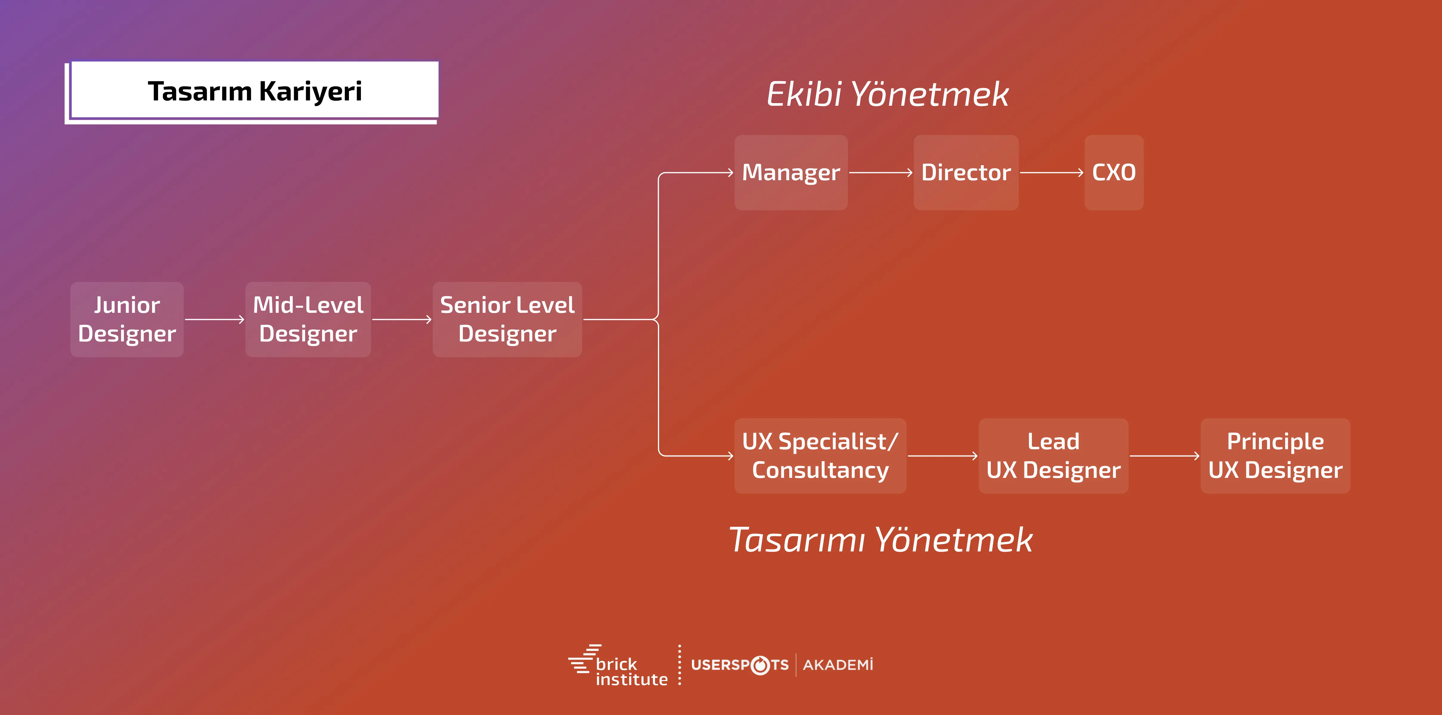 Yeni başlayanlar ve kıdemli tasarımcılar, UX tasarımındaki kariyer yollarını, uzmanlık alanlarını, maaşları ve gelecekteki olasılıkları keşfetme fırsatına sahip olabilirler. UX tasarımcıları, geleneksel üst düzey rollerin ötesinde farklı kariyer yolları keşfedebilirler. Uzmanlık alanları arasında UX araştırmacısı, içerik tasarımcısı, UI tasarımcısı, ürün tasarımcısı veya ürün yöneticisi yer alır. Serbest çalışma ya da danışmanlık özerklik sunarken, bir tasarım ajansı kurmak iş bilgisi gerektirir. UX yöneticileri ekipleri yönetir, junior tasarımcılara mentorluk yapar ve projeleri yönetirken paydaşlarla etkili iletişim sağlar.